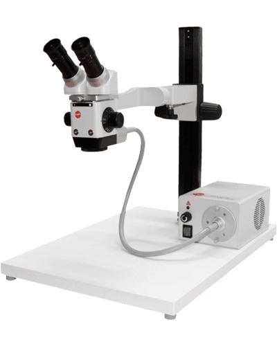 Die Grundplatte von 420 x 600 mm gibt Raum für Instrumente, Präparate und die Hände des Anwenders. Der Fokussiertrieb von 500 mm ermöglicht Arbeiten an Objekten unterschiedlichster Höhe. Die LEDone-Beleuchtung sorgt für konstante Lichtverhältnisse in Tageslichtqualität.