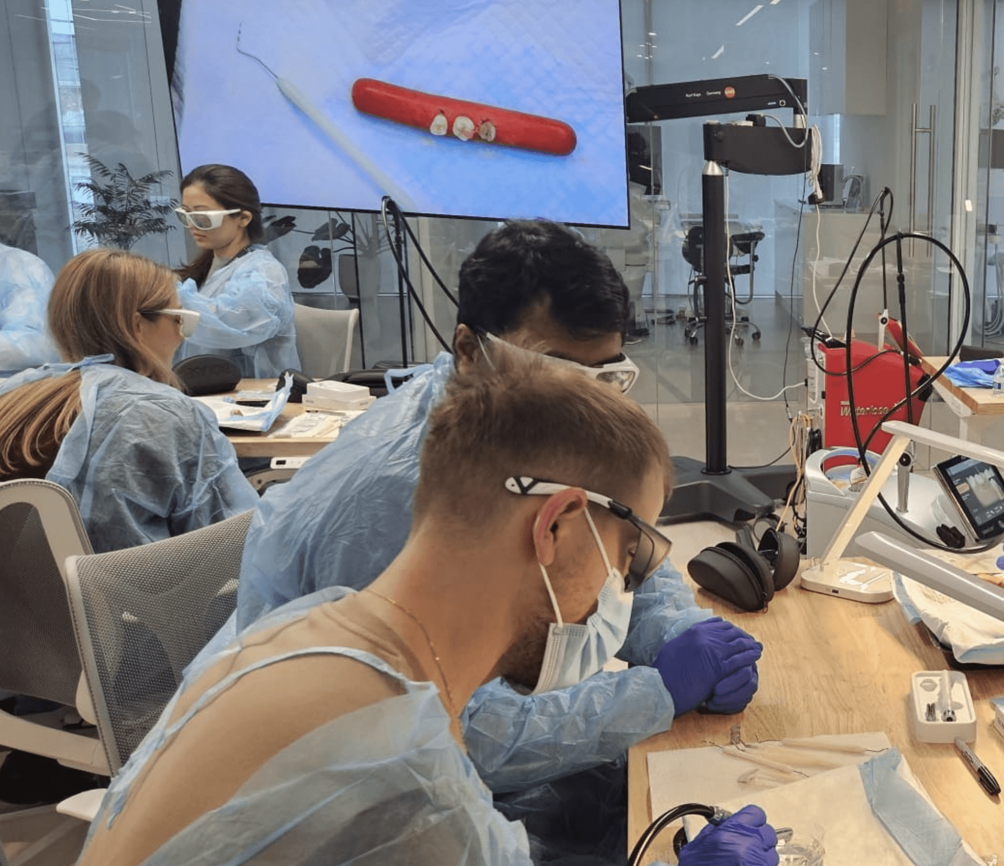 Ausbilder können über den monokularen Mitbeobachter-Tubus das Arbeitsfeld in gleicher Vergrößerung einsehen. Direkte Anleitung, sofortige Korrektur, ohne den Arbeitsfluss des Lernenden zu unterbrechen.