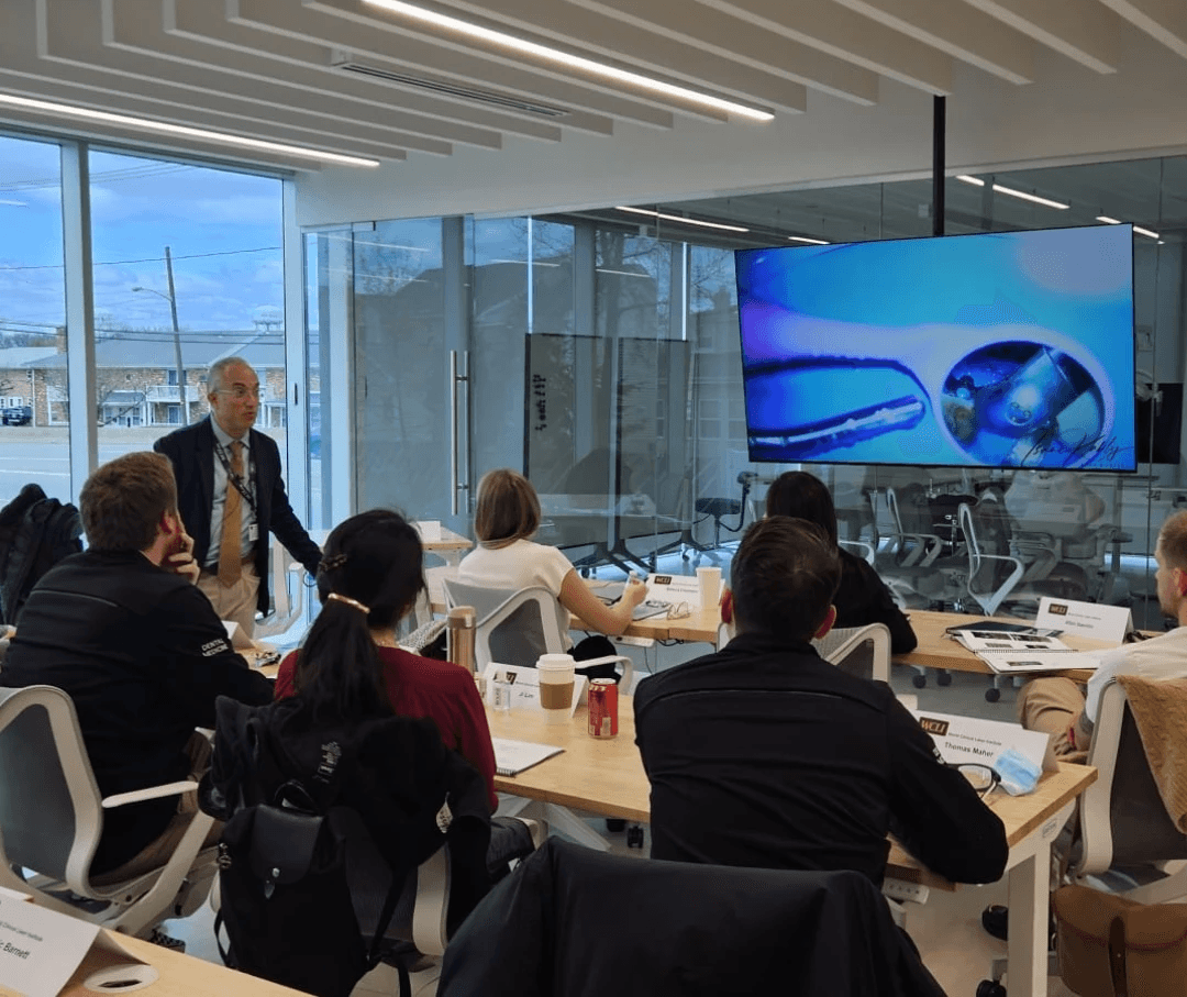 Ausbilder können über den monokularen Mitbeobachter-Tubus das Arbeitsfeld in gleicher Vergrößerung einsehen. Direkte Anleitung, sofortige Korrektur, ohne den Arbeitsfluss des Lernenden zu unterbrechen.