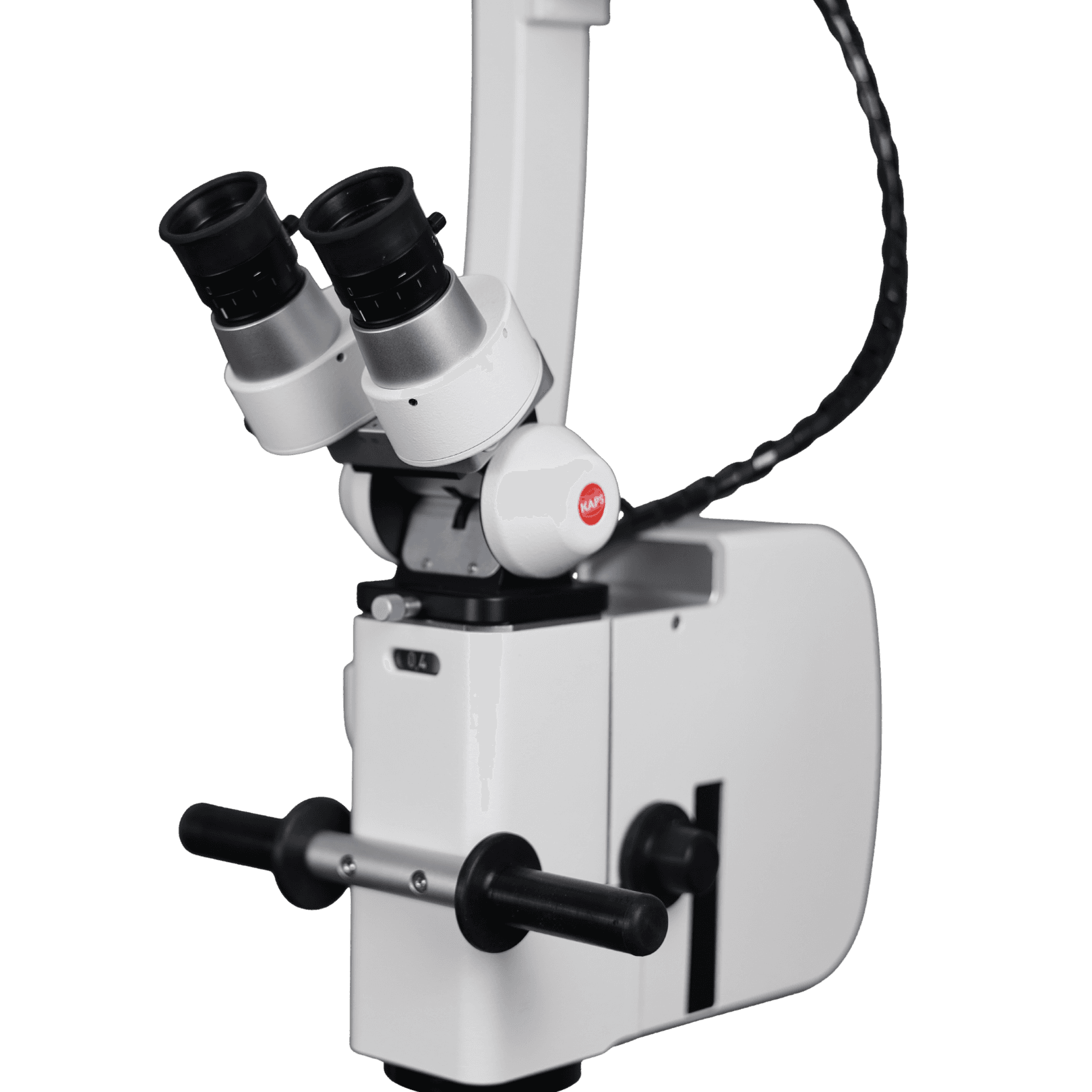 Ergonomische Freiheit für jede Arbeitssituation. Der binokulare Schwenktubus garantiert eine aufrechte Körperhaltung – auch bei langen OP-Tagen.