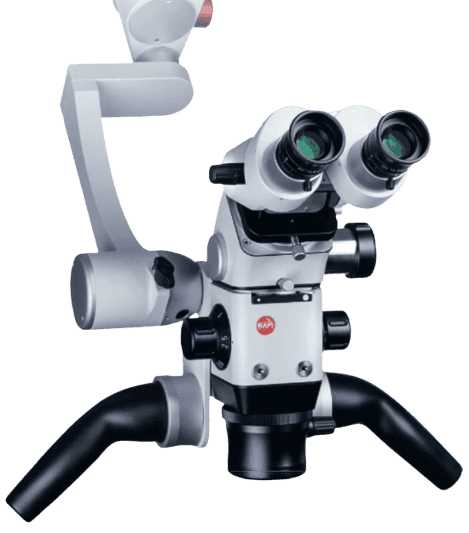 Das Objektiv, mit einer Brennweite von 220–320 mm, verfügt über eine hochwertige apochromatische Optik mit Mehrfachvergütung. Die Nachrüstung ist kinderleicht. Das Objektiv ist binnen Minuten ausgetauscht und bietet beste Ergonomie während der Behandlung.