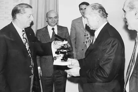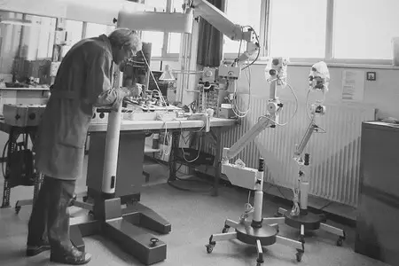 Ein entscheidender Schritt in der Unternehmensgeschichte: Karl Kaps präsentierte den ersten Prototyp eines Operationsmikroskops. Dies war der Startschuss für die erfolgreiche Entwicklung und Produktion von Medizintechnikprodukten.